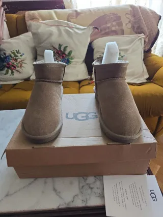 Botines UGG de ante en color marrón. Perfectos para mantener los pies calientes. - Material exterior de ante. - Forro interior de borreguito. - Suela de goma. - Diseño corto.