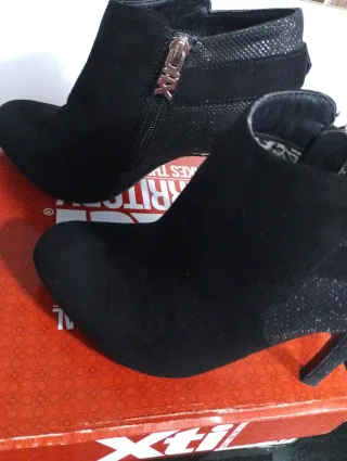 Botines de tacón con un diseño moderno y llamativo. - Cierre de cremallera. - Tacón grueso y cómodo. - Material tipo ante.6€ solamente dos puestas
