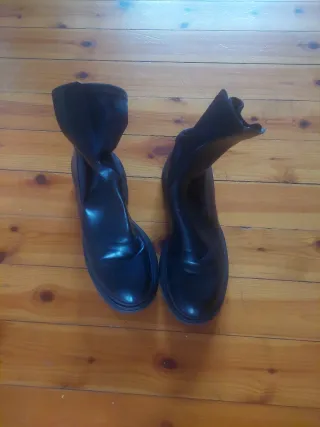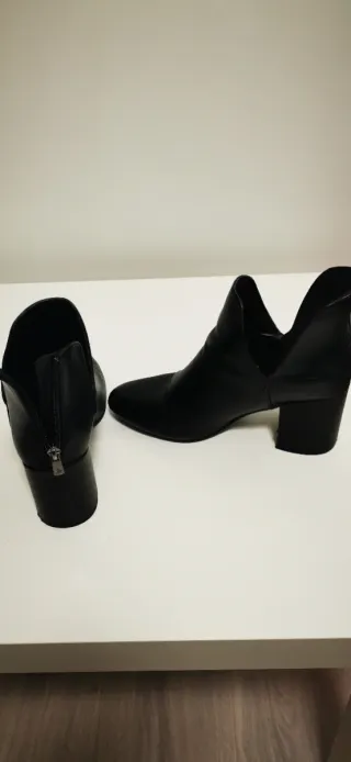 Botines de mujer con un diseño moderno y elegante. Son cómodos y versátiles para cualquier ocasión. Número 40. Color negro . De polipiel. Cierre con cremallera lateral. Prácticamente nuevos , puestos en dos ocasiones. Hago envío