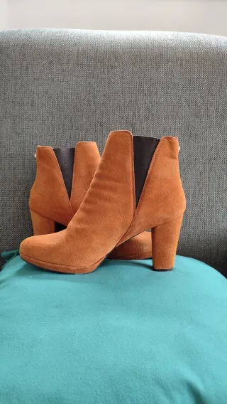 Botines ante tacón marrón talla 38