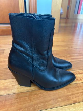 Botines Zara Tacón Negro Piel