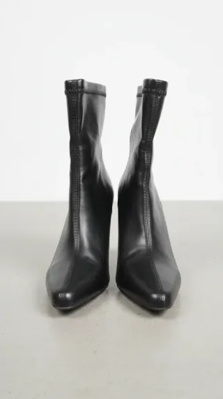 Botines de tacón en color negro. Un básico elegante para cualquier ocasión. - Diseño de punta. - Material elástico. - Tacón alto.