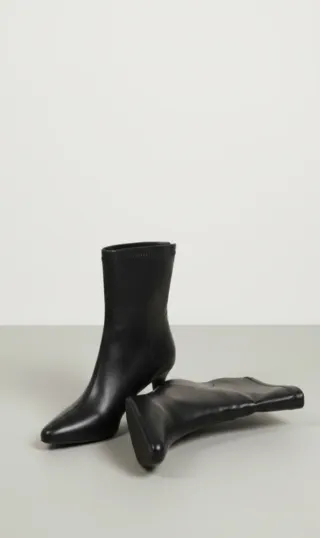 Elegantes botines de tacón en color negro. - Material exterior de piel. - Tacón de aguja. - Cierre de cremallera lateral.