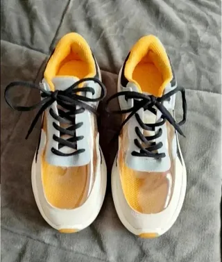 Zapatillas deportivas en muy buen estado de Zara Woman, con partes transparentes y suela de plataforma. Aproximadamente un 39/40. Medidas en fotos.