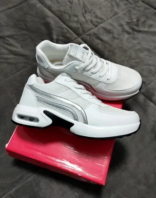 Zapatillas deportivas blancas del número 38. Nuevas. Les faltan las plantillas. Medidas en fotos.