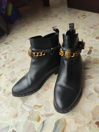 Botines de cuero negros de la marca BCBG. - Diseño tipo chelsea. - Detalle de elástico lateral. - Puntera redonda. Hay que ponerle las tapas. Solo comunicación por este medio Entrego en mano en Sevilla