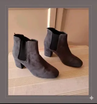 Botines de tacón para mujer, con un diseño elegante y moderno. - Material: Antelina. - Color: Gris. - Solo se han usado una vez.