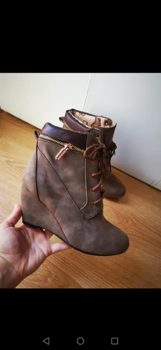 Se venden botines como nuevos, en perfecto estado, con plataforma y forro de pelo, talla 38, apenas usados.