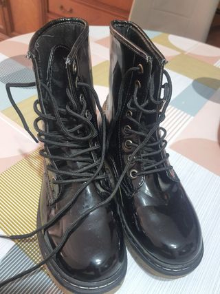 Botines de charol en muy buen estado. - Cierre con cordones. - Diseño tipo Dr. Martens. - Suela de goma.