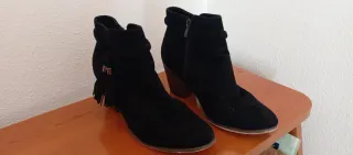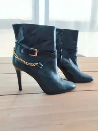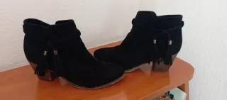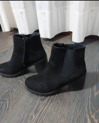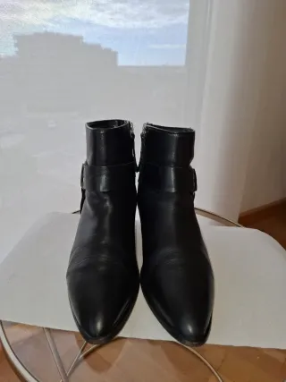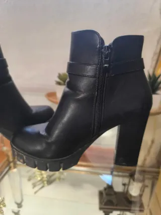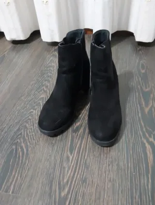 Botines negros talla 37 en muy buen estado. Solo se han usado un par de semanas, por lo que están prácticamente como nuevos. Son muy cómodos y fáciles de combinar con cualquier look, tanto casual como más arreglado. No presentan daños ni desgaste apreciable.