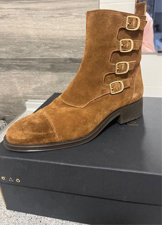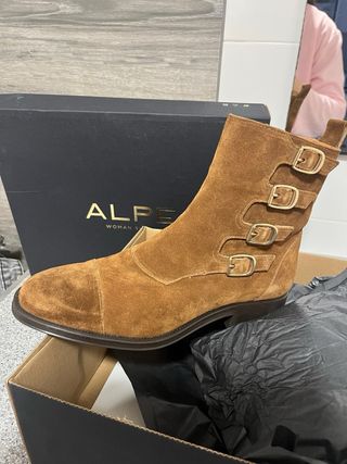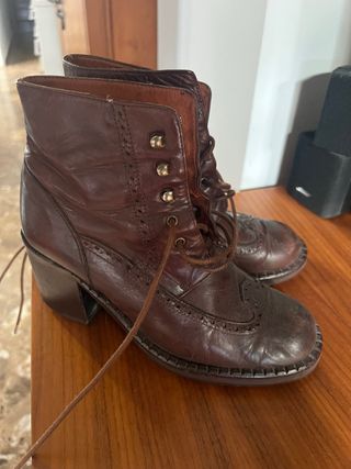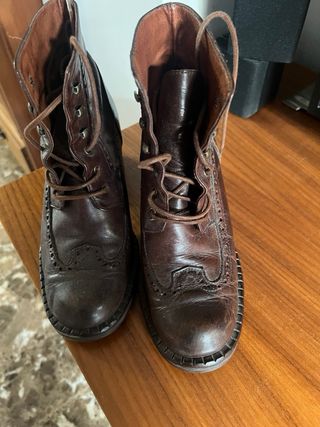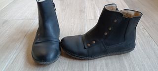 Por fuera están muy bien cuidados, como se ve en las fotos. Por dentro, en la zona del tobillo, el forro está un poco pelado en ambos botines (se aprecia en la imagen), pero no afecta al uso ni se ve puestos. Son muy cómodos y fáciles de combinar en otoño/invierno 🍂 Tienen cremallera lateral y detalle de hebilla decorativa. *Acepto ofertas.