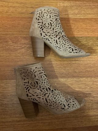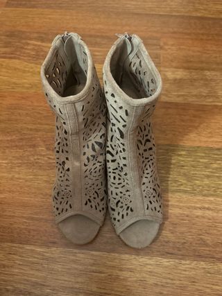 Botines de estilo abierto con un diseño calado. - Material tipo ante. - Cierre de cremallera en la parte trasera. - Tacón grueso.