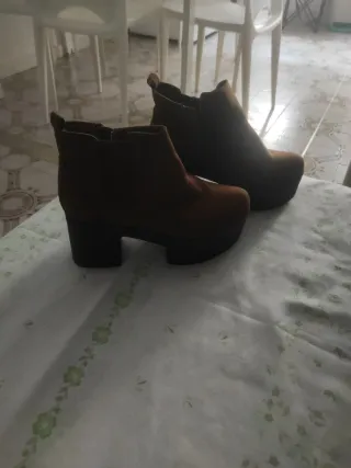 Botines de estilo moderno con un diseño elegante marrones muy cómodos! - Material exterior tipo ante. - Cierre lateral con cremallera. - Tacón grueso y plataforma. - Punta redonda.