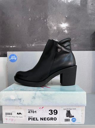 Botines de Piel Tacón Talla 39 Negros Nuevos