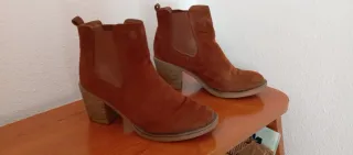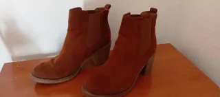 Botines de ante en color marrón, talla 40. Un básico para tu armario. - Material exterior de ante. - Diseño tipo chelsea con elásticos laterales. - Tacón grueso para mayor comodidad.