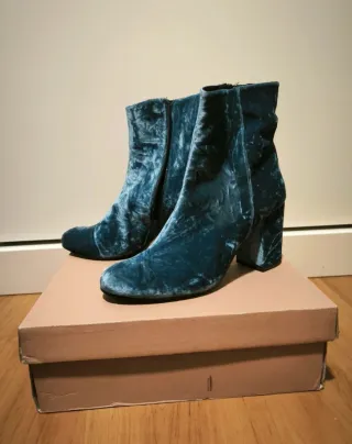 Botines azules de tacón de terciopelo. Talla 41. Marca Helia. Nuevos, sin estrenar. Precio original: 102€.