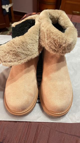 Botines de ante con un cálido forro interior. - Detalle de pelo en el cuello. - Suela de goma con relieve. - Cremallera lateral