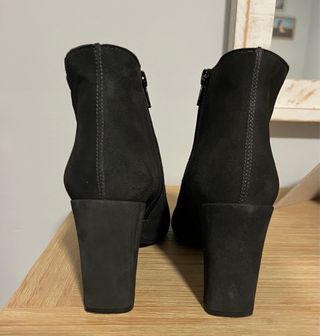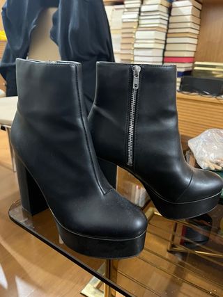Botines de tacón con un diseño moderno y elegante. Perfectos para complementar cualquier atuendo.Numero 36.Puestas solo dos veces...es mucho tacón para mi . - Material exterior de ante. - Cierre de cordones. - Tacón grueso y plataforma.