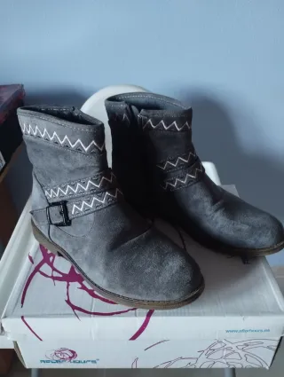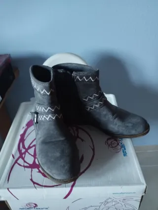 Botines de estilo casual con un diseño moderno. Talla 37, Sfera. - Material exterior de ante. - Detalle de trenza con flecos en el tobillo. - Cremallera lateral para facilitar el calce. - Parte superior con tejido texturizado. - Bastante usadas pero conservadas en muy buen estado.