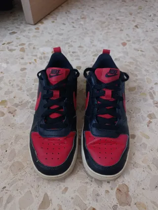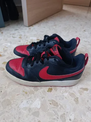 Botines deportivos Nike en combinación de colores negro y rojo. Algo usados pero se conservan en buen estado. Talla 37.5 tal y como pone en la etiqueta. - Diseño de corte bajo. - Cierre con cordones. - Detalle de logo en la lengüeta.
