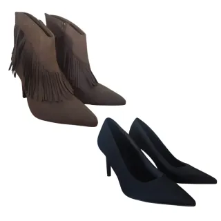 Conjunto de 2 pares de zapatos talla 39 Botín con flecos nuevos - sin uso Zapato negro tacón - muy poco uso como nuevo Descripción más detallada de los artículos en mi perfil. Cualquier cuestión no dudes en contactar.