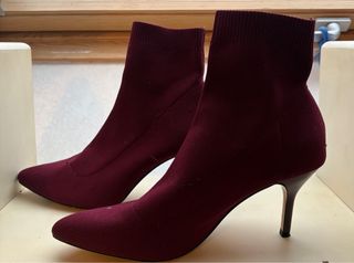 Botines elásticos de tacón fino. Color granate, usados pero en muy buen estado. Vendo por no usar - Diseño ajustado. - Punta fina. - Tacón alto.