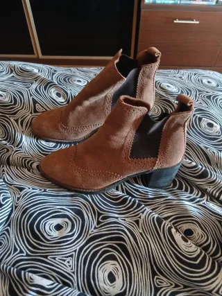 Botines de estilo casual en color marrón. - Material exterior tipo ante. - Diseño de caña baja. - Cremallera para facilitar el calce. - Muy poco usadas