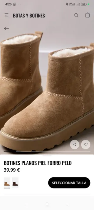Botines de ante con forro interior cálido, perfectos para el frío. - Sin estrenar. - Talla 39 - Color beige/marrón.
