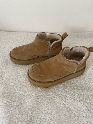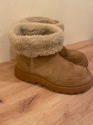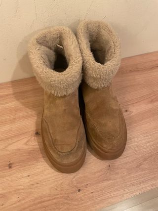 Botas de Stradivarius con un diseño acogedor y moderno. - Exterior en ante marrón. - Forro interior de pelo sintético. - Suela de goma resistente. - Solo se han usado dos veces