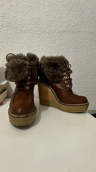 Botas Stradivarius Talla 37 Cuña Madera y Pelo
