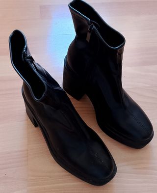 Botines en color negro de la tienda Stradivarius. Tacón grueso de unos 8 cm de altura y de altura de suela 2 cm. Sólo usados 1 vez.