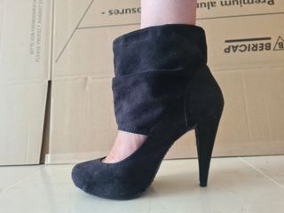 Zapatos de tacon tipo botin de Stradiarius de ante color negro. Talla 38. 11cm de tacon