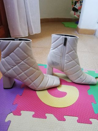 Botines acolchados de color Beige de la talla 39. Son de la tienda stradivarius. Poco uso pero los he rozado al andar, de ahí su precio. También los regalaría con cualquier compra de mi perfil.