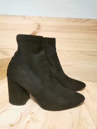 Botines negros con tacón serraje Marca Stradivarius Talla 38