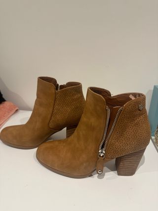 Botines Xti de color marrón, usados una sola vez. Se encuentran en perfecto estado. - Cremallera lateral para facilitar su uso. - Suela gruesa y resistente.