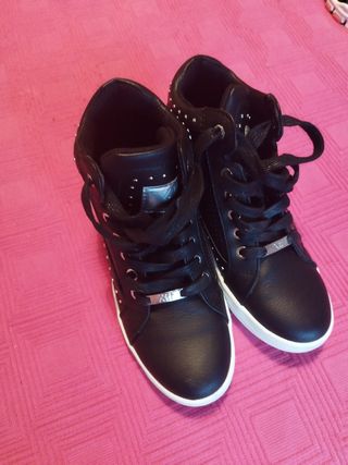 Color Negros. Con un poco de plataforma y tacón finos. Cremallera atrás. Marca XTI