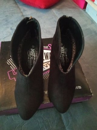 Botín negro de ante de tacon, número 38.muy cómodo solo puesto en dos ocasiones. No hago envíos.