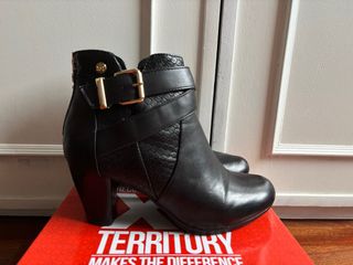 Botines negros xti con cremallera trasera y correa regulable número 37 puestos en una ocasión. El tacón mide 6 cm