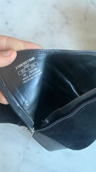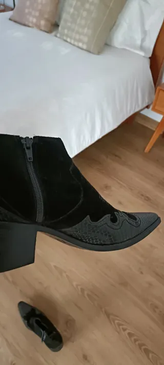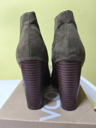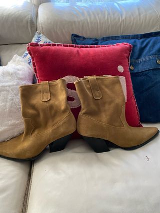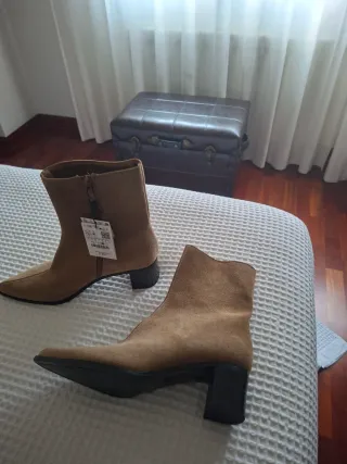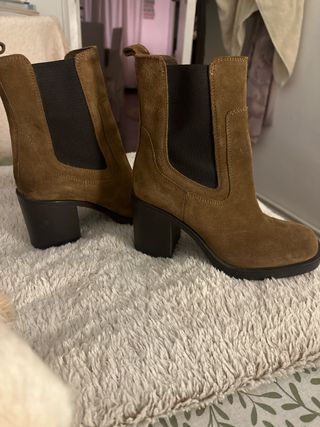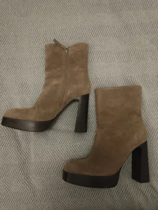 Botines de tacón de Zara, talla 38. Un básico para tu armario. - Diseño tipo botín. - Tacón grueso. - Material ante.