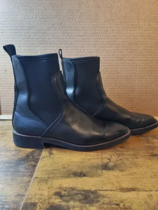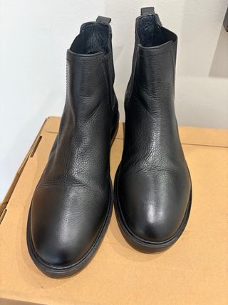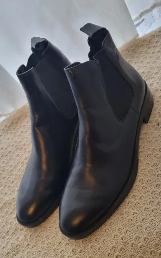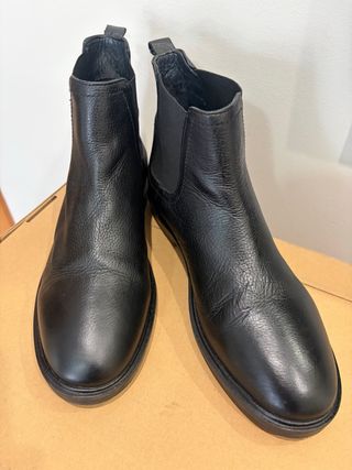 Botines de piel con un diseño clásico y elegante. - Material exterior de piel. - Diseño tipo Chelsea con elásticos laterales. - Suela de goma resistente. Sin uso.