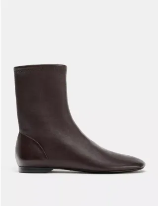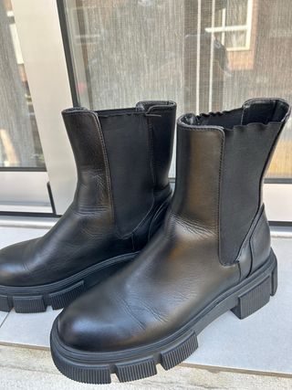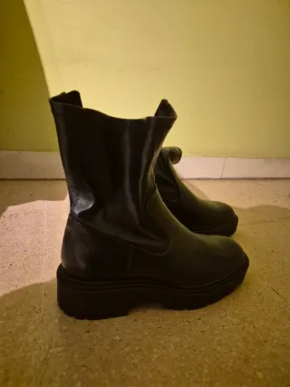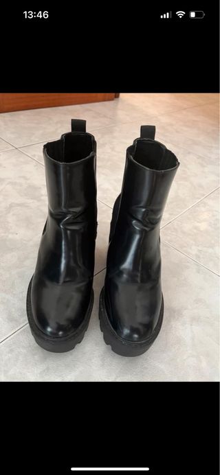 Botines de estilo Chelsea de Zara. Perfectos para el día a día. - Material exterior de piel. - Suela gruesa y dentada. - Detalle elástico en los laterales.