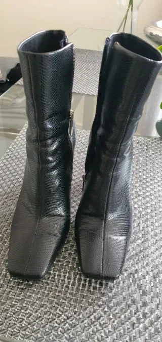 Botines de piel de Zara, como nuevos. Diseño elegante y versátil. - Material exterior de piel. - Detalle de textura de serpiente. - Tacón cuadrado.