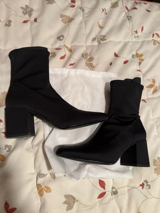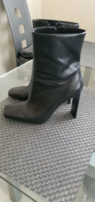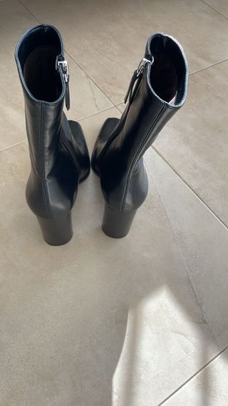 Botines de tacón alto de Zara. - Diseño elegante y moderno. - Tacón cuadrado y robusto. - Material flexible y cómodo.