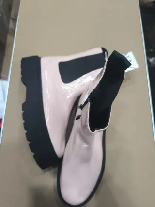 Botines nuevos con etiqueta, listos para estrenar. Su diseño moderno y el acabado brillante los hacen perfectos. - Cierre de cremallera lateral. - Detalle elástico en la parte superior. - Suela gruesa y resistente.