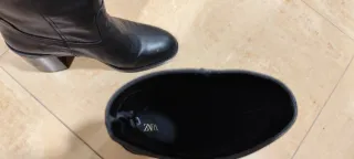 Botines en color negro de la tienda Zara. Talla 36. Sólo usados 1 vez. Con cielle cremallera lateral. Medida de caña altura 22 cm. SIN CAJA.