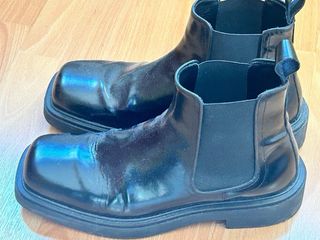 Botines de hombre de Zara en color negro. - Diseño Chelsea. - Punta cuadrada. - Suela gruesa.