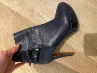 Botín Zara Tacón Plataforma Azul. piel y ante.