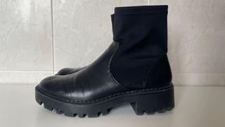 Botines de piel negros de Zara. - Diseño Chelsea. - Tacón grueso y plataforma. - Detalle de elástico lateral.
