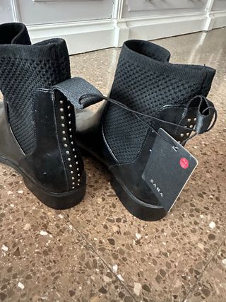 Botines de Zara con un diseño moderno y detalles que marcan la diferencia. - Parte superior elástica tipo calcetín. - Adorno de tachuelas metálicas en la parte trasera. - Tirador trasero para facilitar su puesta.