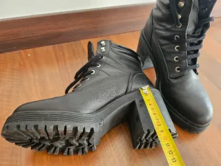 Botines de estilo robusto con cordones y tacón grueso. - Diseño de caña alta. - Cierre con cordones. - Suela de plataforma. - Tacón cuadrado.